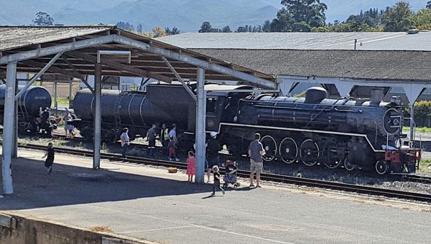 Ceres Rail had their inaugural trip into Elgin to the brand-new Elgin Railway market on Saturday 28th April, with a second trip on Sunday 29th. Traveltime chose to visit on Sunday. It meant a very early start for everyone who was booked on the train – scheduled time to get down to the Unity Station near the Royal Cape Yacht club was 07:30. Taxis rolled in and the train manager eventually took his place at the wooden steps to start checking everyone in! Such huge anticipation when at a few minutes past 08:00 the train whistle sounded and you could feel the train starting to move – and hear the steam; see the black smoke billowing out of the funnel;