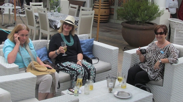 It was SALE time in Franschhoek and the sale boards were everywhere – the ladies seemed to quietly find exactly what they needed and wanted, and arrived at the Allora Restaurant in the Franschhoek Square with plenty of parcels.