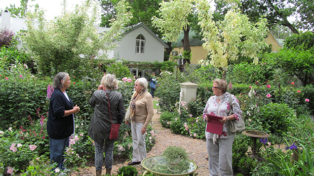 Our day to Greyton started off with rain in the city which had dire consequences with the traffic. This made us late for our L.O.N.G. trip to Greyton. The dismay at being late was quickly lost when we viewed the two gorgeous gardens which had been arranged for us! A bit of retail therapy and then a 10km drive out to The Oaks Estate where a L.O.N.G. table had been set for us to enjoy their lunch. A delicious tomato soup with bread sticks followed by a cold platter with chicken pie and interesting vegetables with a delicious apple pie completed our experience. A day out in the country is always refreshing and it was wonderful to see all the blue cranes, sheep and cows—this restored our souls before, once again, we hit peak traffic in the city!