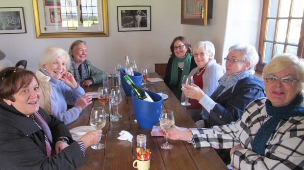 Winter has come to the Western Cape – however, this did not stop 30 ladies enjoying a good day out in the Stellenbosch area. We drove out in fine rain but by the time we stopped at the Joostenberg Deli rain had stopped and the ladies eagerly ‘gathered’. Of course, at Joostenberg there is a top-class pork butchery, with a good deli for those who chose not to purchase pork!