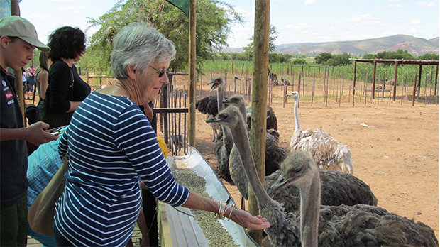 A visit to Oudtshoorn is not complete without a visit to an ostrich farm. We chose to visit Safari Ostrich Farm for a guided tour, followed by a light lunch at the George Hotel in central Oudtshoorn. Oue Werf is situated in the countryside, a short drive north of Oudtshoorn. We were warmly welcomed on our arrival and shown to our rooms to settle in prior to a walk to a local winery for wine tasting. Pre dinner drinks were served on the patio followed by dinner in the dining room.