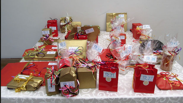 Brian gave out a few spot prizes too (Colored stickers on some hats). What was very popular was a ‘spray cannon’, a container which ‘sprayed’ little bits of paper over the table (with a big bang!) – and a few questioned where they were purchased so they could get them for their Christmas meal!
