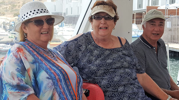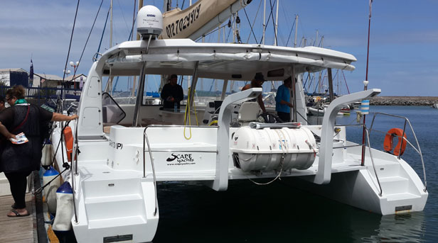Breakfast on 1st January was a very leisurely affair – with us waiting for staff to take our luggage to the coach – only to discover the reason that they had not yet done this, was the fact that ladies still had their keys in the breakfast room with them! This after being told the previous night to check out – and hand in your keys at reception! Nothing daunted, however, we still managed to check out of Blue Bay Lodge by 10h00 and headed down to Club Mykonos for our Catamaran cruise with Elite Charters.