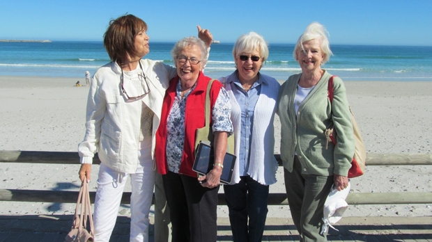 April always signals the end of ‘summer’ and the start of winter. Today was planned around enjoying the ‘last rays of summer’ and how correct I was! The day dawned crystal clear – no clouds or wind – and on arrival in Yzerfontein I heard sighs of contentment at the beautiful sight of the beach! Here was this beach all ready for us to take a stroll with friends catching up. Some just stood and spoke – some ventured along the brick paved path – some chatted to the friendly lady in the beach front art gallery – some took their walk very seriously (Maureen and Thyra) who say they are in training for the Big Daddy dune in Sossusvlei!!