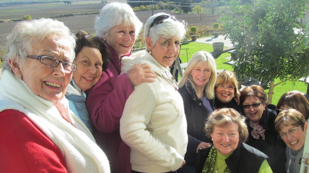 We had marvelous sightings of snow in the Hex River Valley and our first stop at the Veldskoen Padstal for lunch had the mountain tips covered in glistening snow. Glistening because now the sun was out! A joyful lunch with a table of farmers alongside us had the ladies jokingly trying to pair a few of the farmers off with our ‘single ladies’!!
