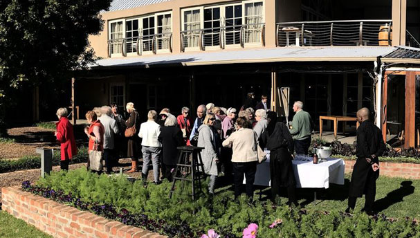 We had 44 people to lunch at a mystery venue – we had organised the lunch to be held at Longridge Wine Estate near the R44 in Stellenbosch. What a show they put on for us! We had pre-drinks (Boplaas port and a grapetiser) set out in their beautiful herb/vegetable gardens on a fabulous day! Fortunately, it was not as cold as early morning and already the tension and excitement in the group was evident!