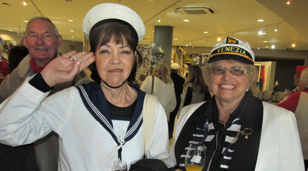 We had the Krystal Beach Hotel with their Ndizi Art Gallery; their ‘faux’ boat; and separate function room called the Captain’s Table as our Venue of Note! The stage was set, and our coach arrived at the venue with a happy lot of ‘party-goers’ all dressed in their nautical attire. The bright Blue, White with a touch of Red made for such a colourful group of people all enjoying a sherry (to ward off the cold) or an orange juice and a chat with each other. Some wandered the Art Gallery and various comments were heard of some of the art displayed – oh well, to each his own! (Art is such a personal taste and specific to each person’s taste)
