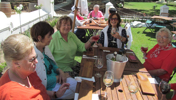 Next stop, after a lovely drive past Vredenheim and their healthy animals on either side of the road, was Vergenoegd. Everyone settled down and enjoyed catching up with friends. To coin Molly and Juno’s phrase who elected to sit-alone after not seeing each other for many months – “Life is good”